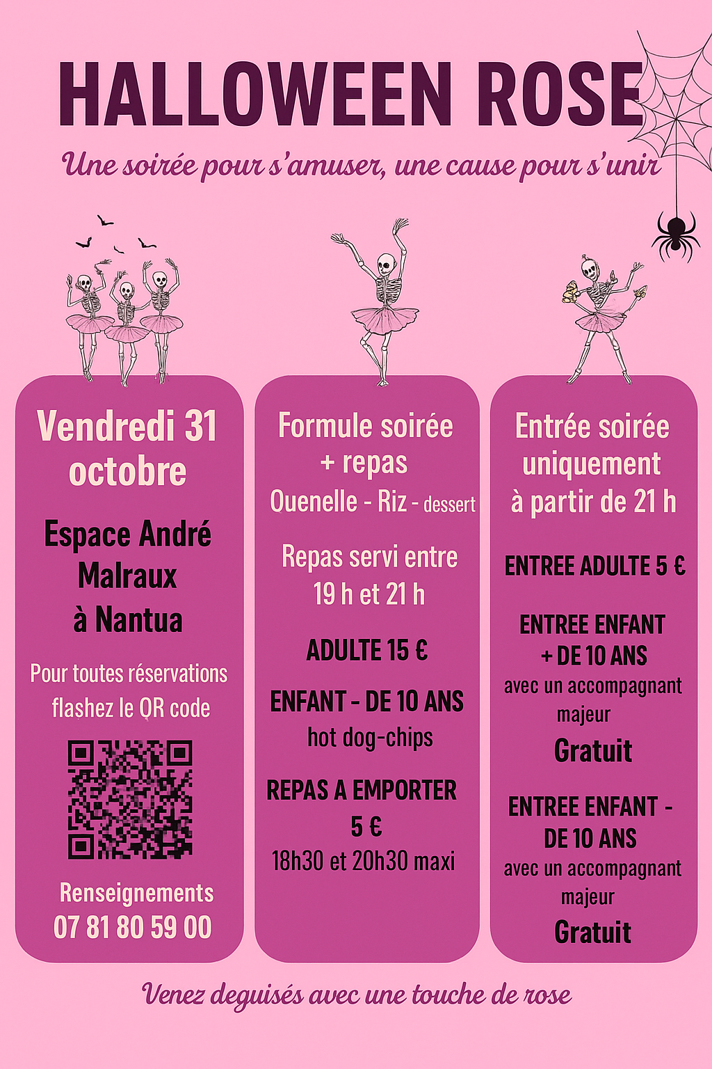 𝗛𝗮𝗹𝗹𝗼𝘄𝗲𝗲𝗻 𝗥𝗼𝘀𝗲 : 𝗱𝗮𝗻𝘀𝗲𝘇 𝗽𝗼𝘂𝗿 𝗹𝗮 𝘃𝗶𝗲 ! AMBIANCE ANNÉE 80 au profit Les Ain trépides en rose Espace André Malraux 𝗥𝗲𝗷𝗼𝗶𝗴𝗻𝗲𝘇-𝗻𝗼𝘂𝘀…