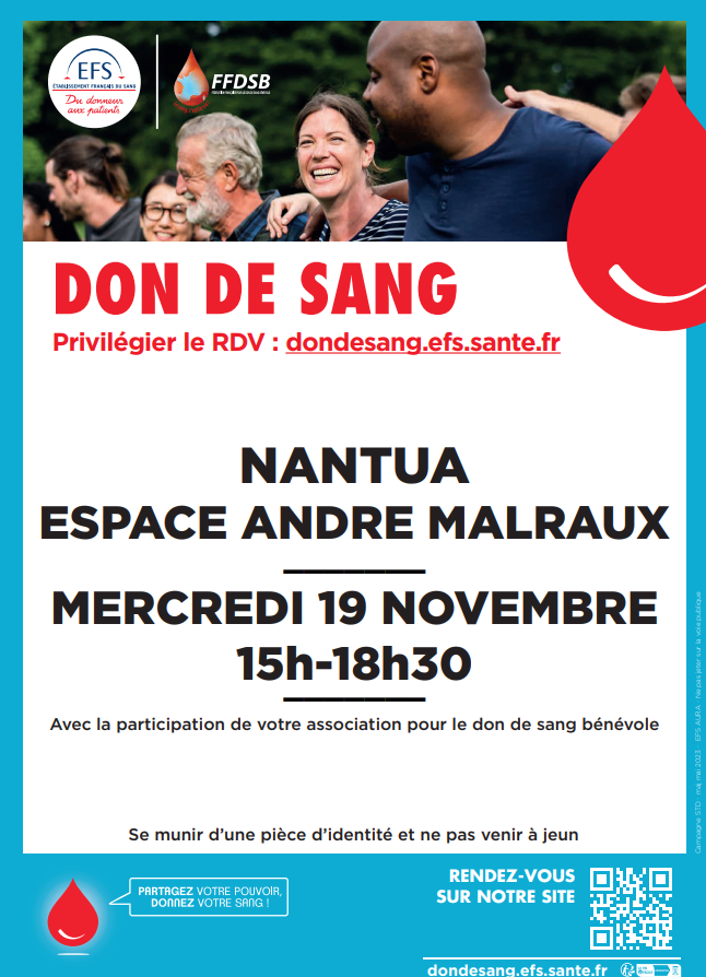 Le mercredi 19 novembre 2025 – venez donner votre sang lors de la collecte mobile de Nantua